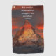 Cita inspiradora, "No es la montaña que conquistamos, sino nosotros mismos" de Edmund Hillary, con una hermosa imagen de una montaña bañada en una bolsa de tote con luz solar naranja.
