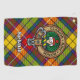 Insignia escudo de Buchanan rodeada por una correa y hebilla sobre el fondo de un clan tartán. Texto personalizado.