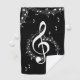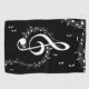 G Clef entre notas blancas de música en negro. El fondo negro hace que aparezcan las notas blancas brillantes.