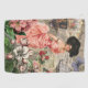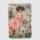 Una hermosa mujer victoriana pintando de rosa con flores y un ventilador - este maravilloso y caprichoso collage de cuentos de hadas tiene flores, una mariposa, un ventilador, café y mucho color.