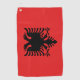 Eleva tu juego de golf con nuestra exclusiva toalla de golf con la bandera de Albania! Esta toalla de golf, elaborada con meticulosa atención a los detalles, es más que un accesorio práctico; es una celebración de la herencia albanesa y el orgullo nacional. El diseño exhibe orgullosamente el icónico águila de dos cabezas sobre un fondo rojo, que simboliza la rica historia, unidad y resiliencia de Albania. Ya sea que estés golpeando a los verdes, practicando en el campo de práctica o compitiendo en un torneo, nuestra toalla de golf de la bandera de Albania agrega un auténtico toque de espíritu nacional a tu experiencia de golf. Esta toalla, hecha con materiales de alta calidad, está diseñada para ser duradera y absorbente, asegurando que su equipo esté limpio y seco. Su diseño vibrante y su robusta construcción lo convierten en la forma perfecta de expresar su admiración por Albania en el campo de golf.