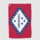 Presentamos nuestra toalla de golf exclusiva con bandera de Arkansas. Eleva tu experiencia de golf con nuestra exclusiva toalla de golf con la bandera distintiva de Arkansas. Esta toalla de golf, elaborada con meticulosa atención a los detalles, es más que un accesorio práctico; es una celebración de la rica historia de Arkansas y del orgullo del estado. El diseño muestra orgullosamente una forma de diamante con un fondo azul y 25 estrellas blancas, simbolizando el estatus de Arkansas como el 25° estado en unirse a la Unión. Ya sea que esté en el campo de golf, practicando en el campo de práctica o disfrutando de rondas de ocio, esta toalla de golf le añade un toque auténtico de Arkansas a su juego. Fabricado con materiales de alta calidad, nuestra toalla de golf de bandera de Arkansas está diseñada para ser duradera, altamente absorbente y fácil de transportar, asegurando que mantenga su equipo limpio y reflejando su admiración por Arkansas con todo uso.