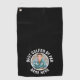 This custom golf towel features your own photo printed at the bottom center on a sleek black background with crisp white fonts and a simple black border around the image. You can add custom text above, below, or on both sides of the photo—perfect for a name, a funny phrase, a date, or a short message. Popular choices include sayings like “Best Golfer By Par,” “Best Dad By Par,” or any short text you like. For longer text, the second line can be left blank.