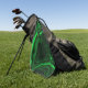 Toalla De Golf Curvas verdes claras y oscuras sobre fondo oscuro.