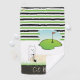 Toalla de golf Green, Black and White Stripe. Con gato divertido tratando de salir de la trampa de arena, más conocido como la caja de gatos.
