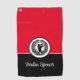 Esta toalla de golf se muestra en un color negro y rojo de dos tonos, con una franja de acento blanco, y muestra una imagen artística de un golfista. Personalizar este elemento y añádalo o cambia el nombre de ejemplo al tuyo.