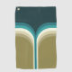 Arcos dobles de estilo retro ilustracion geométrico con rayas beige, verde, azul, azul marino y turquesa