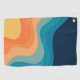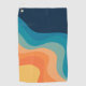 Olas de estilo retro ilustracion geométrico con rayas amarillas, naranjas, azules, azul marino y turquesa