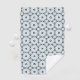 Geometric-patterned towel set with black and white circular designs on light background. Displayed as hanging towels and folded washcloth. Modern and elegant.