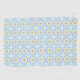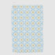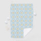 Towels with a pastel blue geometric pattern featuring circular floral designs. Displayed on a rack and folded; evokes a calm, decorative aesthetic.