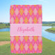 Toalla De Golf Divertido Bright rosa preppy argyle nombre de cost
