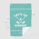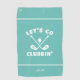 El diseño divertido del palo de golf presenta "Vamos a ir de fiesta con el palo" en el centro en tipo blanco dispuesto con dos palos de golf y una pelota de golf, todo sobre un fondo turquesa claro sólido. Hay dos pequeñas franjas blancas de acento encima y debajo del diseño central. La parte inferior contiene una plantilla moderna para monograma personalizado, nombre o texto de elección. Mensaje debajo de esta lista o correo electrónico beachpause@gmail.com con solicitudes de color personalizado.