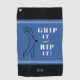 Diseño divertido de características personalizadas que presenta un dibujo de línea artística de un golfista masculino en silueta con "¡AGARRALO Y RIP IT!" en una fuente blanca moderna y audaz. El diseño está bien ubicado entre dos bandas de franjas blancas. También encontrarás una plantilla moderna para un nombre monograma, iniciales o texto personalizado en blanco. El fondo se completa con azul real y negro. TODOS los colores de este diseño son personalizables, incluida la figura del golfista. Si tiene alguna pregunta sobre este o alguno de mis diseños, por favor contacte con beachpausedesigns@gmail.com. Se aceptan solicitudes de colores personalizados.