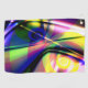 Resumen de la espiral retorcida convexa azul y amarilla con diseños superpuestos y desvanecidos en estilo gradiente y tonos oscuros que se asemejan a la sombra y a los tonos claros que se asemejan al reflejo de la luminosidad en algo así como un globo colorido súper inflado.