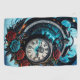 El reloj en la niebla del infinito. Un diseño casi surrealista, en el centro de esta poesía visual se encuentra un reloj de bolsillo grande y ornamentado, con sus números romanos marcados en el dial como secretos antiguos. Parecen susurrar las historias del pasado antiguo mientras permanecen en el silencio del tiempo. El fondo es un fascinante juego de nubes azul turbulentas y azul oscuro profundo. Estas nubes parecen cargar con el peso del infinito mientras sopla suavemente todo el día, dándole un aura de misterio.