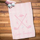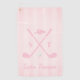 Looking for a stylish personalized golf towel for women that doesn’t get lost or look boring? This chic towel features pink golf clubs with white bows, a matching golf hat, and a crisp white golf ball on an elegant blush pink striped background. Customize it with initials and a full name for a polished, personal touch.
