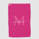 Magenta Caliente Monograma Blanco Rosa Elegante Guión Giral Nombre Toalla de Golf