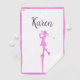 Esta elegante golfista parada en un campo de golf con su nombre hace una toalla de golf única.
