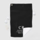 Presentamos nuestra toalla de golf con monograma minimalista moderno en negro y blanco, la esencia de la simplicidad y la sofisticación. Adopte una estética moderna con este diseño elegante, que presenta dos iniciales y un nombre y apellido separados por una barra decorativa simple. La tipografía se destaca en blanco elegante sobre un fondo negro llamativo, lo que la hace elegante y funcional para cualquier entusiasta del golf.