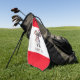 Esta linda toalla de golf personalizada para enfermeras presenta un lindo oso koala vestido de enfermera con un estetoscopio rojo en un fondo blanco con bordes rojos. Perfecto para una enfermera o un graduado de la escuela de enfermería. Imagen generada con IA.