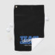 Diseño de toalla de golf personalizada para tus padrinos que incluye "EQUIPO NOVIO" en negrita tipografía trendy azul real sobre un fondo negro sólido. Personaliza el nombre de los padrinos en escritura blanca crujiente. El título o texto personalizado se muestra debajo. ¡Todos los colores en este diseño son personalizables en la herramienta de diseño de Zazzle! Envía un mensaje con preguntas o solicitudes de color personalizado.