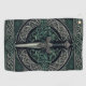 Diseño celta en tonos verdes con una espada corta y nudos celtas.