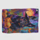 Admire el espíritu de Halloween con este diseño encantador que presenta un perro lindo en un gorra de brujas rodeado de calabazas talladas. Perfecto para añadir un toque de encanto espeluznante a sus celebraciones festivas.