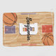 Esta toalla de golf personalizada tiene un diseño de baloncesto con cancha de baloncesto y dos baloncesto ilustrados. Personalizó esta toalla de golf con un nombre o apellido y una inicial. Un gran regalo deportivo personalizado para regalarle al aficionado al baloncesto en su vida que juega al golf.