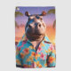 Gracioso hipopótamo usando una camisa hawaiana en una hermosa playa.