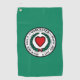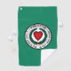 Golf Towel with flag of city of Worcester, Massachusetts; green flag with white emblem with red heart in the center