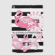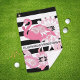 El diseño del producto presenta un flamingo con patrones de paisajes caleidoscópicos en tonos rosas sobre fondo de rayas negras y blancas. Este diseño de aves tropicales con texto personalizado hace una toalla de golf moderna y única.