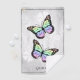 Personalice una toalla única para jugar al golf con una toalla de golf personalizada con flor de mariposa arcoiris. El diseño de las toallas incluye un par de mariposas vibrantes que descansan sobre una vina floral blanca sobre un fondo gris claro. Artículos de regalo adicionales disponibles con este diseño así como una variedad de colores.