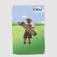 Un divertido diseño personalizado con un golfista vestido de vintage de pie en el rudo mirando hacia el verde y la bandera. El golfista lleva una bolsa de golf con palos de golf. Se puede introducir cualquier nombre o iniciales para crear un regalo de golf personalizado único para el golfista o aficionado al golf entusiasta
