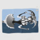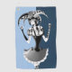 Nombre de la obra de arte: Mejor de dos manos de color: bufón azul quirky sosteniendo dos cartas de juego, una carta de broma y un as de espadas.