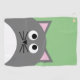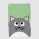 Dibujo animado divertido de gato gris con barriga blanca y orejas rosadas.