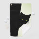El gato negro pálido con ojos verde esmeralda mira desde detrás de la pared negra hacia una sala verde.