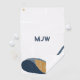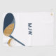 Create a personalized gift that's perfect for your favorite golfer. This golf towel is ready to be personalized with initials or other custom text in navy blue lettering above my realistic style illustration of a golf ball and golf club in shades of blue and gold.