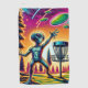 El extraterrestre extraterrestre colorido que está tirando al disco golf de color arte ai colorido.