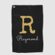 Toalla De Golf Golf Gold Monograma inicial y nombre en negro