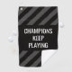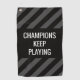 Golfer Modern Black Inspirador Quote Golf Towel tiene un diseño de rayas modernas negras y grises con una inspiradora cita "Los campeones siguen jugando" para que usted esté motivado. Un regalo perfecto para él, su marido o su padre. Utilice la sección "Personalizar" para agregar su presupuesto o salir tal como está. Obra original de Kardz Studio. Si tiene alguna pregunta, por favor contacte conmigo a través de la charla de Zazzle.