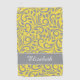 El diseño presenta un patrón floral abstracto en un gris definitivo de moda sobre un fondo amarillo iluminado. Una banda gris tiene dos pequeñas franjas de acento blancas en el borde y un nombre monogramado personalizado (o texto personalizado) en blanco. Personalice los colores o manténgalos como fueron creados. El color del fondo y las fuentes se pueden cambiar fácilmente en la sección de herramientas de diseño. Envíeme un correo electrónico a beachpausedesigns@gmail.com si tiene preguntas sobre este o cualquiera de nuestros diseños.