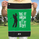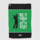 Eleva tu juego de golf con esta toalla "Tee It High & Let It Fly!", que presenta una fuente audaz de mediados de siglo y una silueta de golfista en un rectángulo verde con rayas blancas sobre un fondo negro elegante. Personalízala con iniciales, un nombre o texto corto utilizando la plantilla fácil. El diseño es versátil, ofreciendo opciones de color ajustables para la toalla, el golfista y el texto. Su formato de gráfico vectorial garantiza una claridad nítida en todos los productos de Zazzle. Perfecto para los entusiastas del golf que buscan una adición divertida y práctica a su equipo o un regalo considerado para el golfista en tu vida. Envía un mensaje al diseñador con solicitudes de color personalizadas o preguntas.