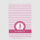 La característica de diseño personalizado de moda presenta una silueta de golfista femenina colocada en una forma rosa y blanca bordeada con el texto curvo "GOLF GOLF GOLF GOLF" en fuente blanca crujiente. Una banda negra sostiene una plantilla para un nombre monogramado, iniciales o texto personalizado. El fondo es un patrón de rayas moderno de color rosa claro y blanco. Si tiene alguna pregunta sobre este o alguno de mis diseños, por favor contacte beachpausedesigns@gmail.com. Se aceptan solicitudes personalizadas.