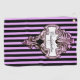 Un fondo atrevido de rayas rosadas y negras con un romántico diseño femenino de gótico steampunk que puedes personalizar con tu nombre y inicial o dar como regalo.