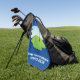 Este moderno y divertido diseño personalizado cuenta con un campo de golf verde, hoyo de golf, bandera y pelota de golf en movimiento en un fondo azul con su nombre y la cita humorística "Scratch Golfer" en un fondo azul. Ideal para los golfistas que tratan de aumentar su discapacidad, o que sabe que quieren mejorar su impulso y poner!