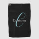 Toalla De Golf Guión curativo editable Monograma Blanco azul negr