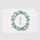 Fondo blanco, decorado con una guirnalda de eucalipto. Personaliza y agrega tu nombre, guión de estilo con letras de mano negra.