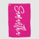 Crea tu propia toalla de golf personalizada rosa caliente. Personalizar el vibrante fondo con su color favorito. El nombre presenta un estilo de caligrafía de escritura de escritura de escritura con letras manuscritas modernas y blancas. Personalizar el color de la fuente, el tamaño y el estilo en este diseño de texto. Encontrará un puñado de guiones de caligrafía audaces y modernos en el sistema. Para nombres más cortos, puede aumentar el tamaño de la fuente.