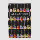Guitarras eléctricas, guitarras acústicas y guitarras semiacústicas patrón en colores psicodélicos funky con nombre personalizado monograma toalla de golf en un fondo negro. Personalizable completo utilizando la plantilla de nombre de monograma. Cualquier guitarrista o músico te dirá que nunca puedes tener muchas guitarras. Este divertido y colorido diseño de guitarra celebra la energía y variedad de este maravilloso instrumento musical. El regalo perfecto para guitarristas, músicos y amantes de la música. Arte pop de guitarra psicodélica, obra original de la artista Catherine Sweetman
