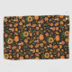 A decorative and cozy fall pattern! This cute design is hand drawn and digitally illustrated, featuring a charming medley of pumpkins, sunflowers, leaves, and mushrooms on a stylish black background. It perfectly captures a charming woodland harvest look with a vintage-inspired, rustic texture.